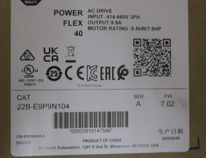 22B-E9P9N104 AB PowerFlex 40 AC Drive 5.5kW/7.5HP 600VAC Ser A NEW Spot Goods!