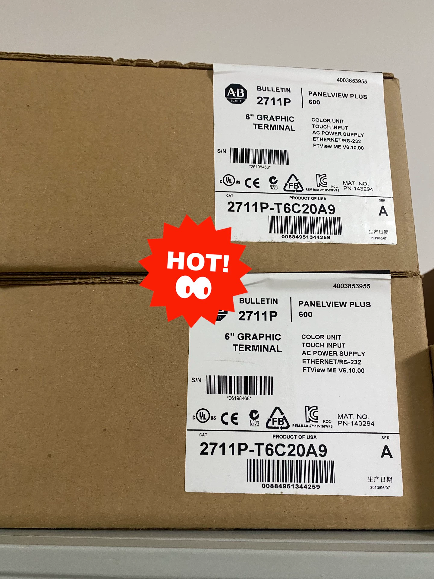 | Battery (real-time clock) | Battery-backed clock timestA critical data, accuracy is ±2 min per month, Battery life: 4 yr min at 25 °C (77 °F), Field-replaceable: cat. no. 2711P-RY2032 or equivalent CR2032 coin-cell lithium battery |